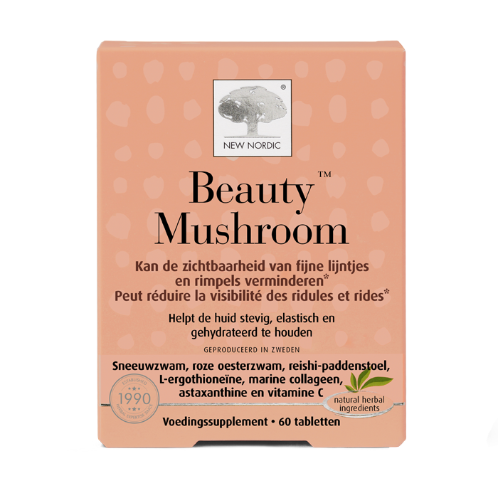 Beauty™ Mushroom combines carefully selected mushroom extracts with marine collagen and plant-based ingredients in a targeted formula designed to support skin appearance as part of your daily routine. The blend includes snow fungus, reishi and oyster mushroom alongside pomegranate, tomato extract and astaxanthin.