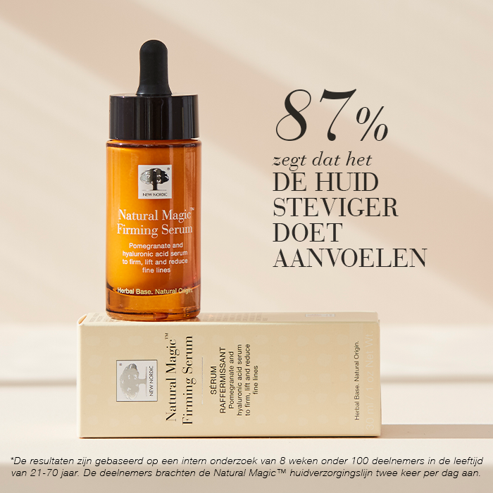 Naturally, our skin’s youthfulness will start to decrease as lines appear, and our skin will not bounce back quite as quickly as it once did. However, drawing inspiration from nature, we recognised that the right combination of active ingredients could help bring our skin back to life. New Nordic’s skin-firming serum is filled with active herbal ingredients that help improve skin firmness, leaving your face feeling soft, supple and smooth.