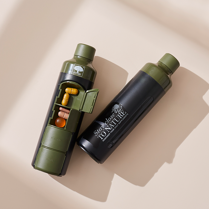 De YOS Bottle is een waterfles en pillendoos in één. Zo kun je altijd op tijd jouw medicatie of supplementen innemen, waar je ook bent.