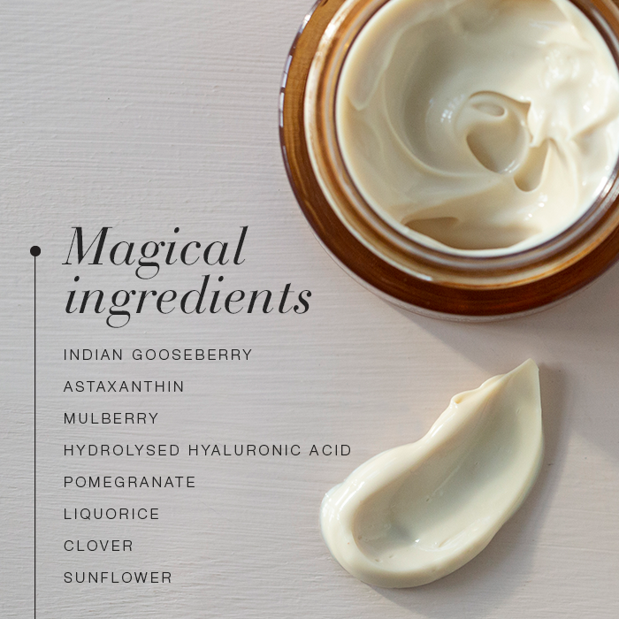 The formula brings together targeted plant extracts that help promote a more even, radiant look. Liquorice root reduces the appearance of dark spots, Indian gooseberry brightens the skin, and clover flower smooths its surface. Astaxanthin provides antioxidant protection, while hyaluronic acid and sunflower seed oil deliver lasting hydration and nourishment.